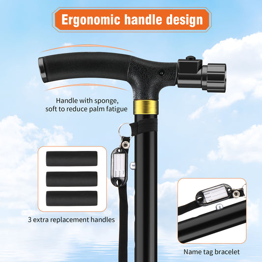 KEKOY Folding Quad Cane with Adjustable Light & Customizable Height