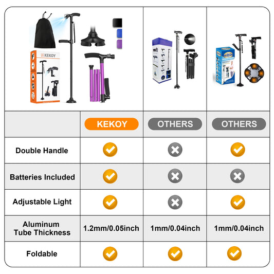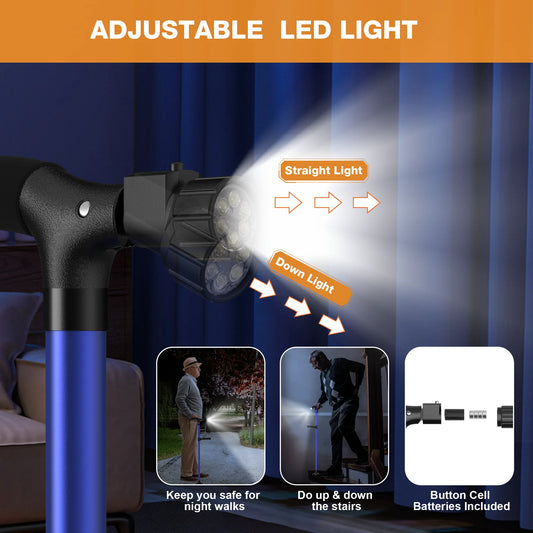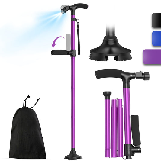 KEKOY Folding Quad Cane with Adjustable Light & Customizable Height