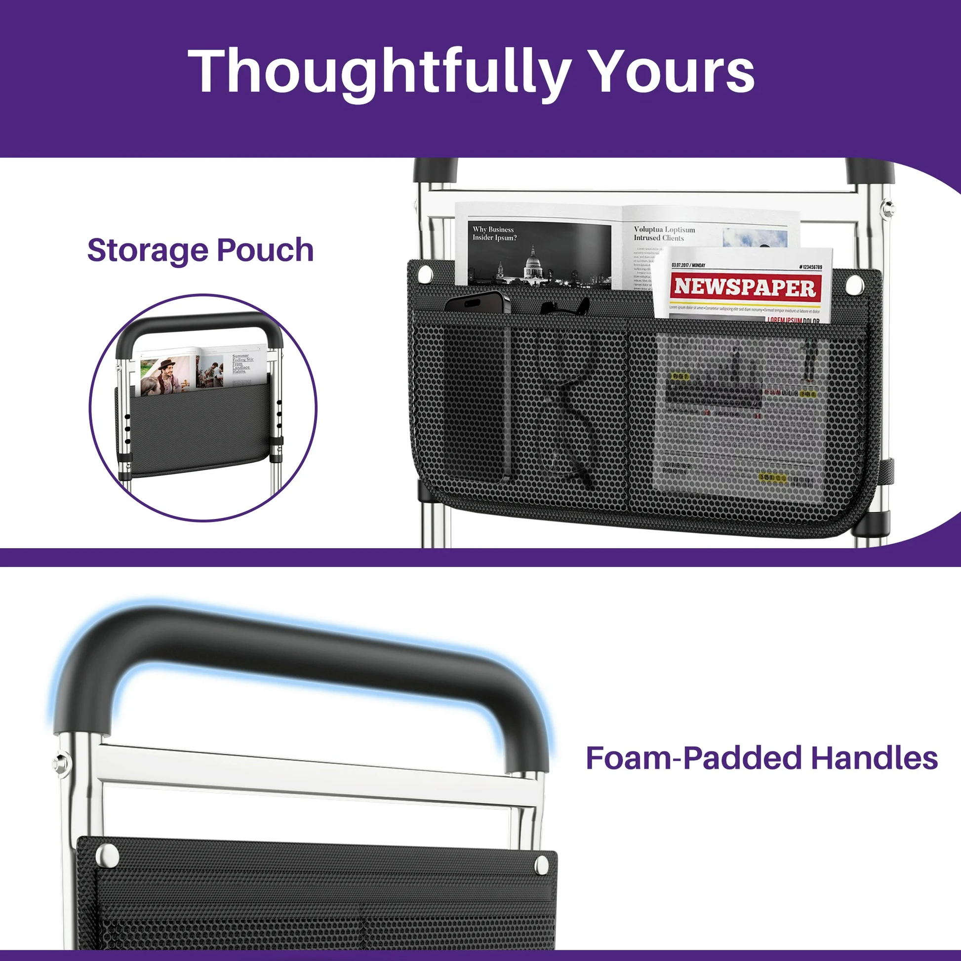 Convenient & Portable with Storage Bag: Includes a free storage bag to keep glasses, remotes, or books within reach. Its portable design lets you take the rail anywhere—perfect for travel or multi-room use.