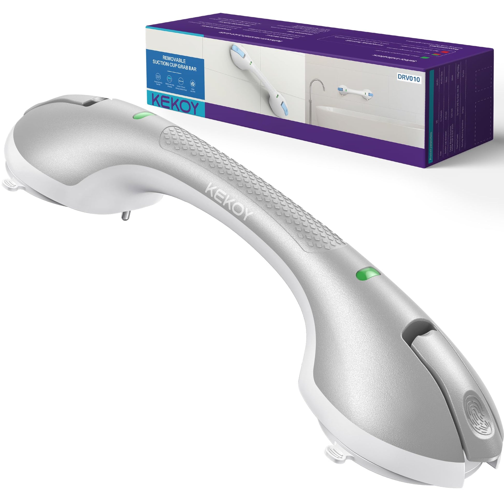 KEKOY 17.5 Inch Suction Grab Bars for Bathtubs and Showers with Indicator - Heavy Duty Safety Shower Handle for Seniors and Elderly, Handicap Bars for Bathroom, No Drilling and Removable, Silver