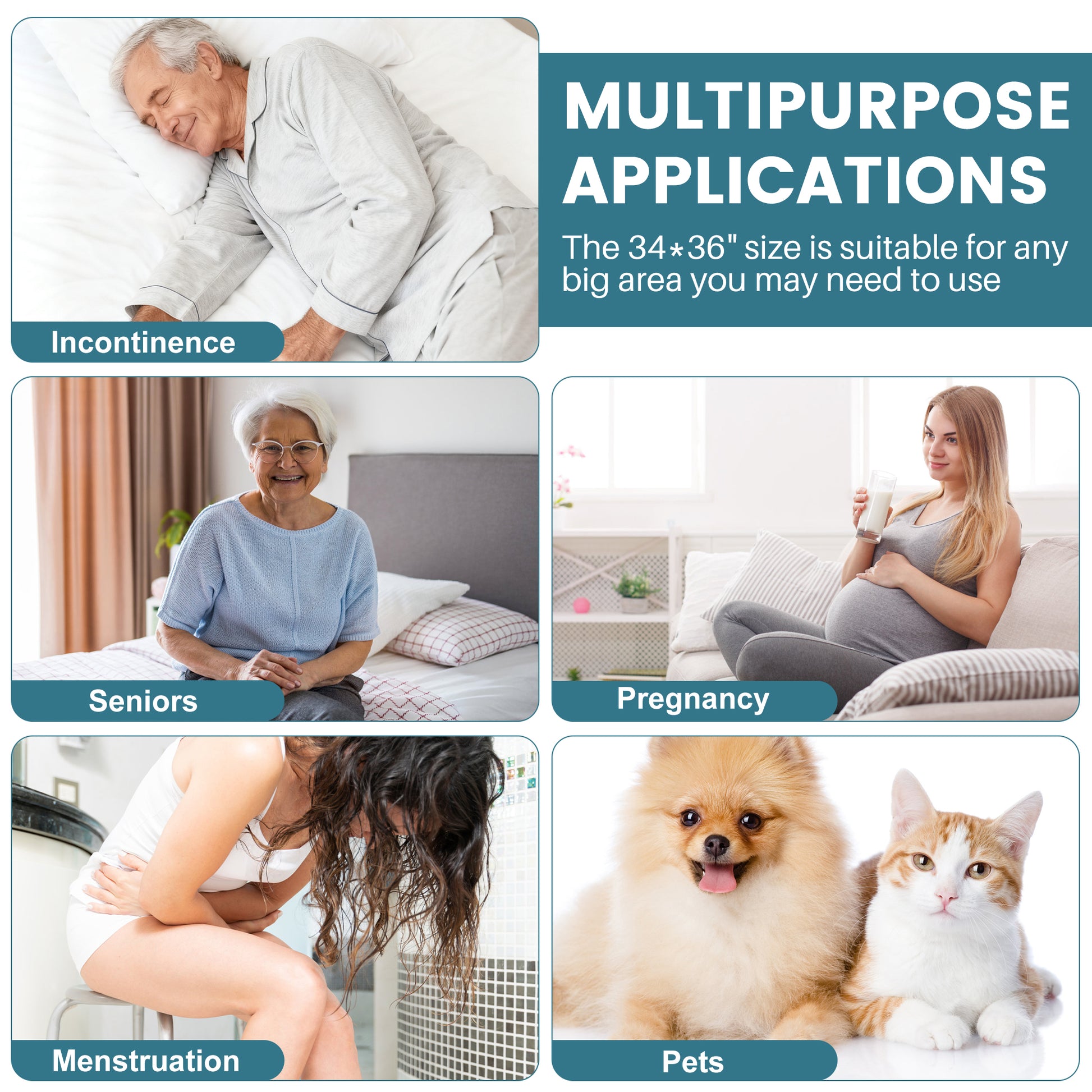 - 【Pet-Friendly & Odor-Free】: Our incontinence pads for bed is perfect for pet accidents and toilet training. It's more durable and cost-effective than disposable options. It's easy to clean and effectively neutralizes and prevents lingering pet urine odors