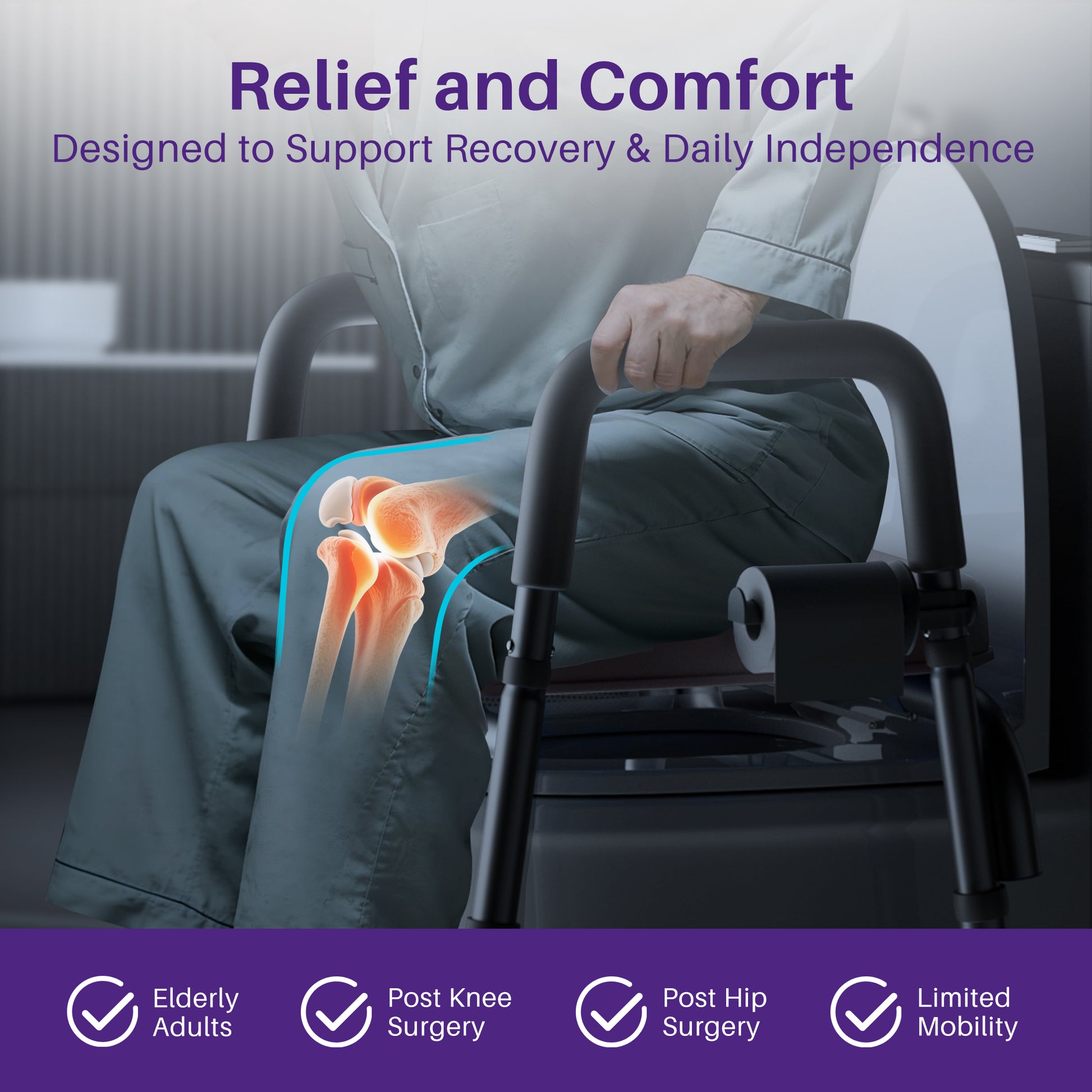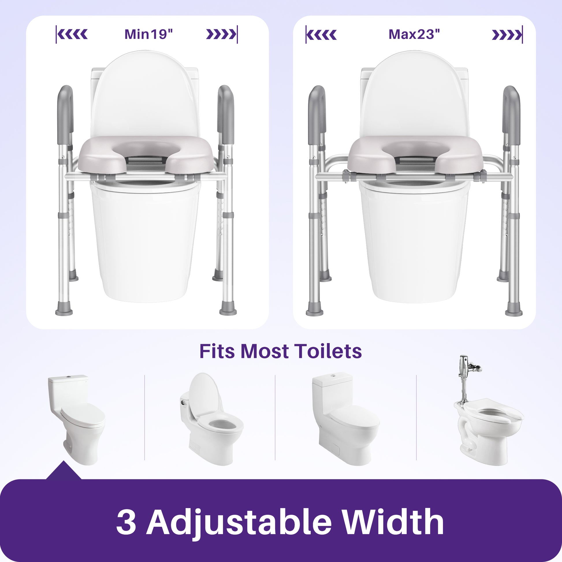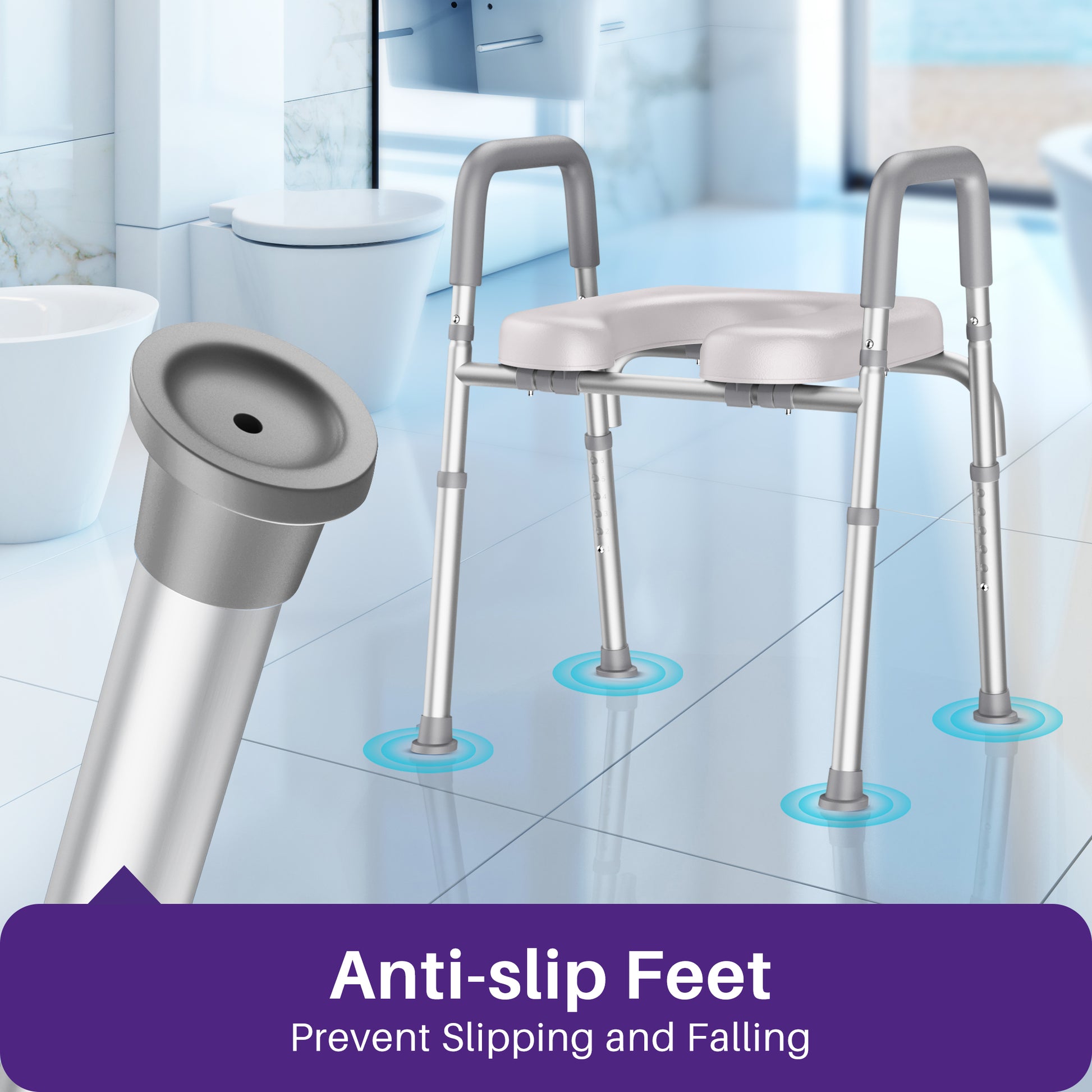 Regain bathroom confidence with the KEKOY toilet riser seat with handles. This reliable adult raised toilet chair offers secure support up to 400lbs, a comfortable padded seat, and easy tool-free setup. Its adjustable height and non-slip base ensure stability, making daily routines safer and easier.