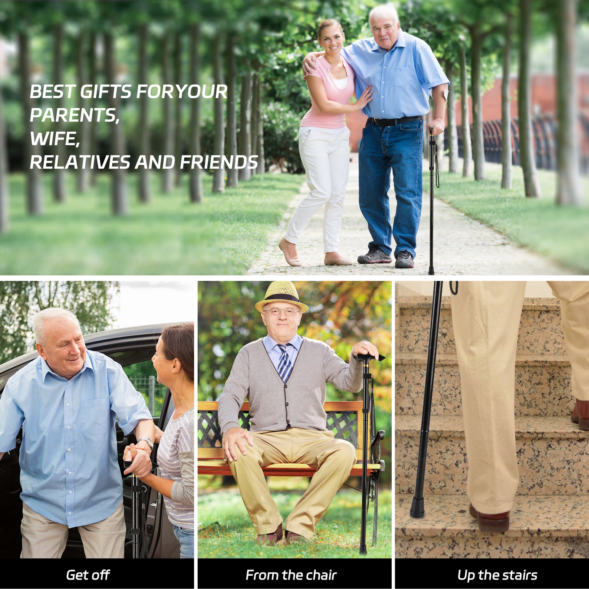 - Guarantee Measures - Collapsible cane anti-slip wrist strap to prevent the hand from accidentally slipping while hanging, freeing the hands when not needed; Additional safety locks, locking rings stop the cluck of the cane and ensure it stays in place after adjustment.The folding cane is suitable for all kinds of occasions in life: walking, shopping, traveling, etc.