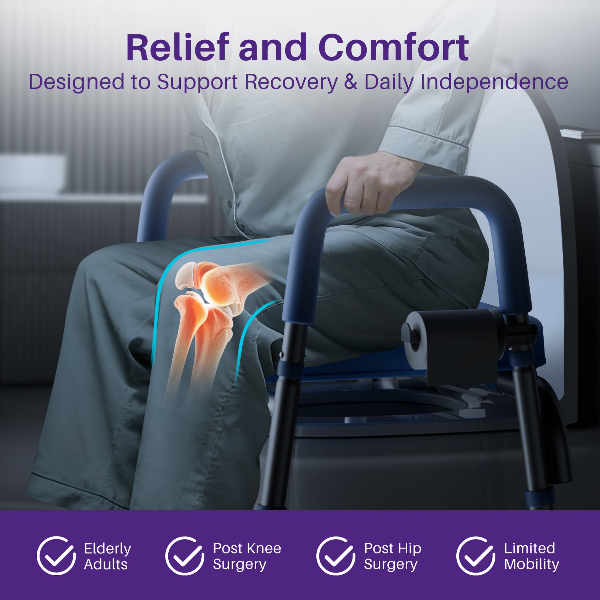 - Total Customization for Your Comfort:Tailor your experience with 6 height adjustments (16.8"–21.8") and 3 width settings, ensuring an ideal and secure fit whether used at bedside or over a toilet.